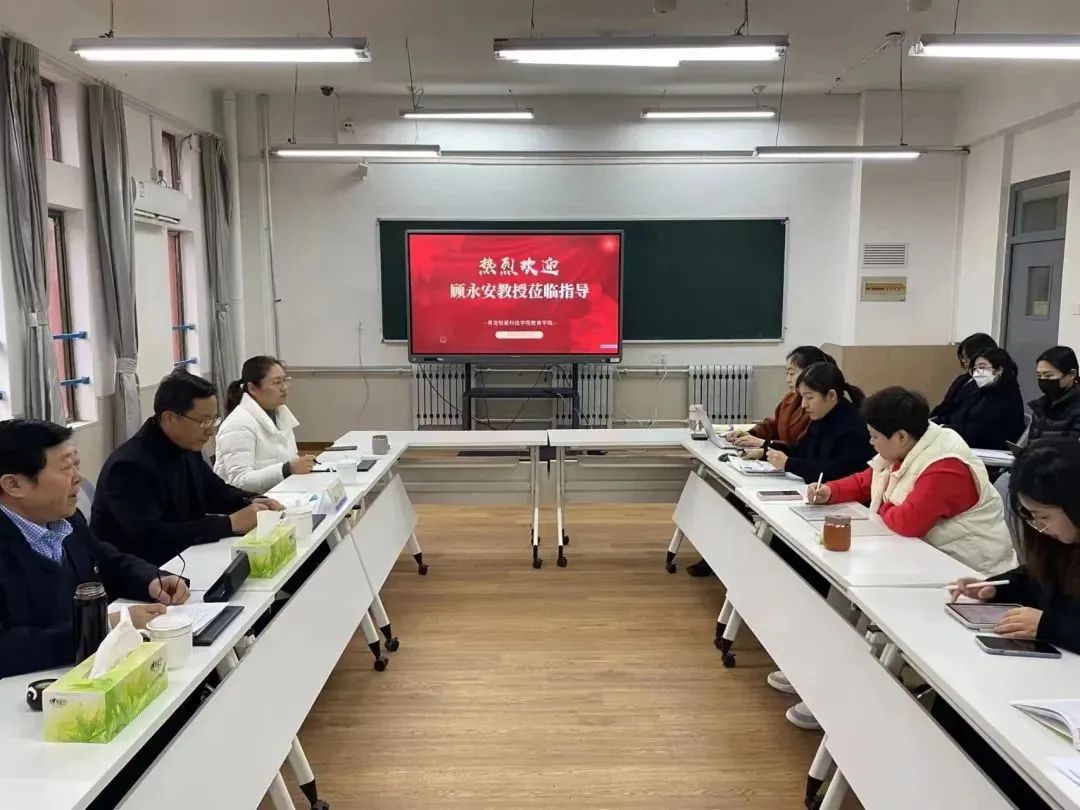 报告会后,顾永安教授到二级学院教育学院座谈调研,院务会成员和骨干教师与专家深入交流,备受启发。交流会上,顾教授对教育学院学前教育学科专业特色亮点建设给予肯定,对于专业建设中存在的问题和困惑进行了解答并提出建设性的意见。顾教授指出,学院要在进一步凝练办学定位体系、远景目标体系的基础上加强专业群建设,积极探索专业的跨界融合,探索具有教育学院特色的专业建设标准。顾教授对未来教育学院的学科专业建设表示期待。