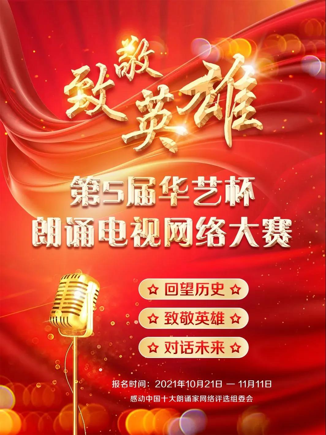 为传承和弘扬中华优秀传统文化,歌颂建党百年光辉历程,彰显新时代群文风采,体现人民是历史的创造者,铸牢中华民族共同体意识,用声音与经典传颂国家和民族发展的壮丽史诗,向英雄致敬。感动中国组委会联合众多文艺团体、著名朗诵家、教育家等共同发起了“致敬英雄-第5届华艺杯朗诵电视网络大赛”活动。