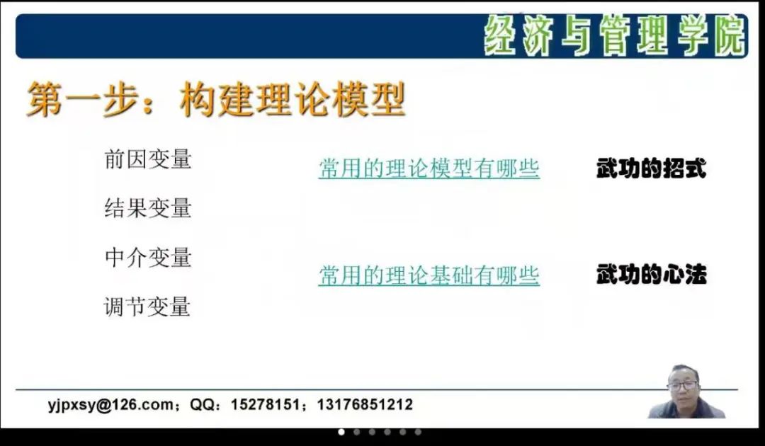 接下来,杨教授分八个步骤详细阐述了如何进行实证研究方法。在构建理论模型的讲授中,杨教授巧妙地将“理论模型”和“理论基础”比喻为“武功招式”和“武功心法”。通过92种“武功招式”和40种“武功心法”,深入浅出地讲解了理论模型的构建技巧,使在场听众受益匪浅。此外,杨教授还详细讲解了假设推演与理论基础的几种关系论证、设计量表和发放问卷的技巧、检验数据的方法、处理数据的软件工具、回归分析方法要点以及结构方程模型的套用方法,最后,杨教授还特别强调了结论与结果的区别,指出理论贡献要与文献对话,成文内容应在结果和结论的范围内。