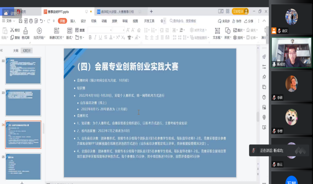 2022年10月25日下午2:30-4:30,商学院在线上举办了创新创业大赛专题讲座,主题为:2022年全国高校商业精英挑战赛会展创新创业大赛赛事介绍。本次讲座特邀全国高校商业精英挑战赛山东省竞赛组委会秘书长——靳成功担任主讲。商学院国商、电商专业部分师生参与了本次讲座。