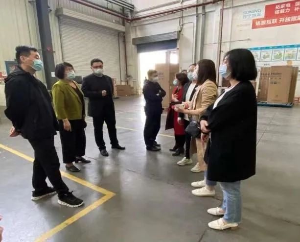 2022年4月29日物流教研室全体成员在徐倩院长的带领下赴青岛苏宁物流中心参观调研。此次一行主要针对大型货物储备仓库、商品的出入库流程的优化、商品的在库管理等进行实地考察,与苏宁物流人力资源部和物流管理部门领导就物流人才的培养、物流课程体系的构建、理论与实践的结合等事宜进行深度洽谈。