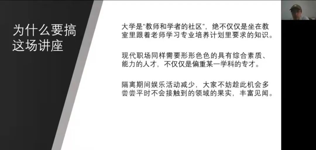 讲座伊始,叶展老师首先解释了开展这一系列讲座的原因。叶老师认为当前大学教育中,教师和学生都应当广泛地传授和摄取知识和经验,而不能仅仅局限于专业所要求的课程,现代社会需要的不仅仅是专业人才,知识面广、技能多的学生,在职场上同样具有很多优势,而且商科学生在未来就业中,需要与来自各种背景,有各种需求的人打交道,广阔的视野对于商科学生来说非常重要。所以叶老师非常希望将他讲授的面向电子商务专业学生开设的计算机网络安全技术课程的内容分享给更多有兴趣的学生。