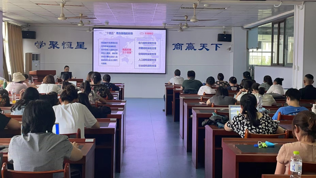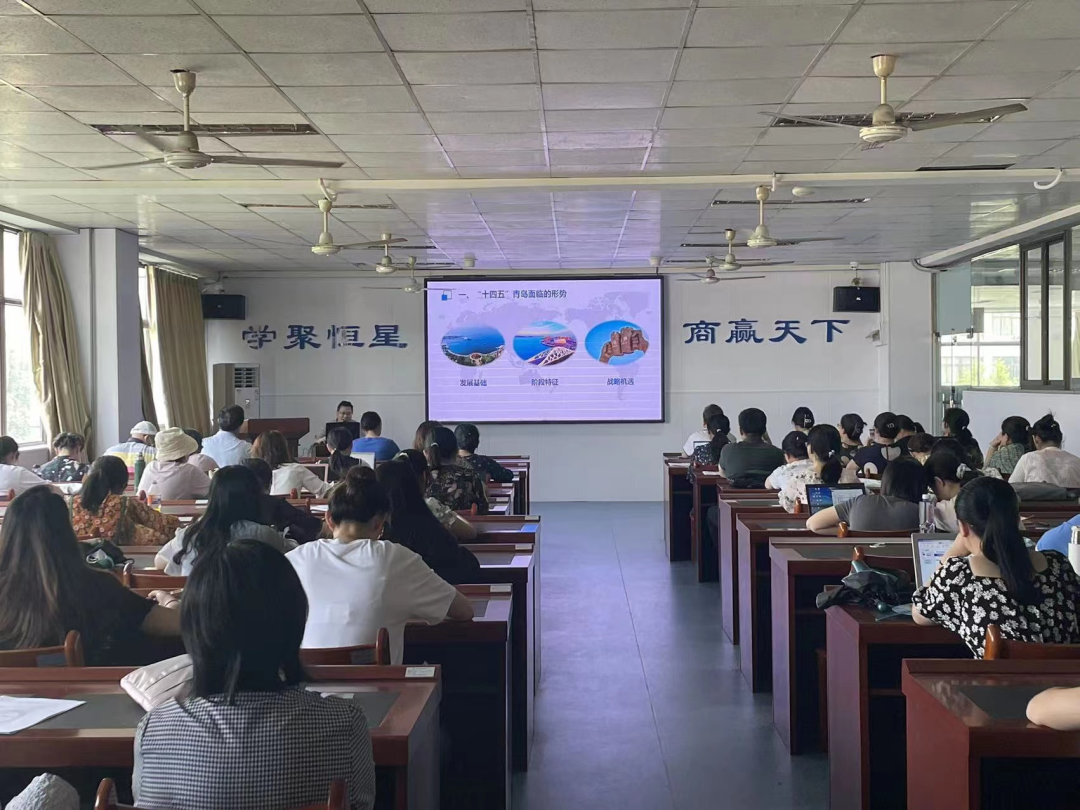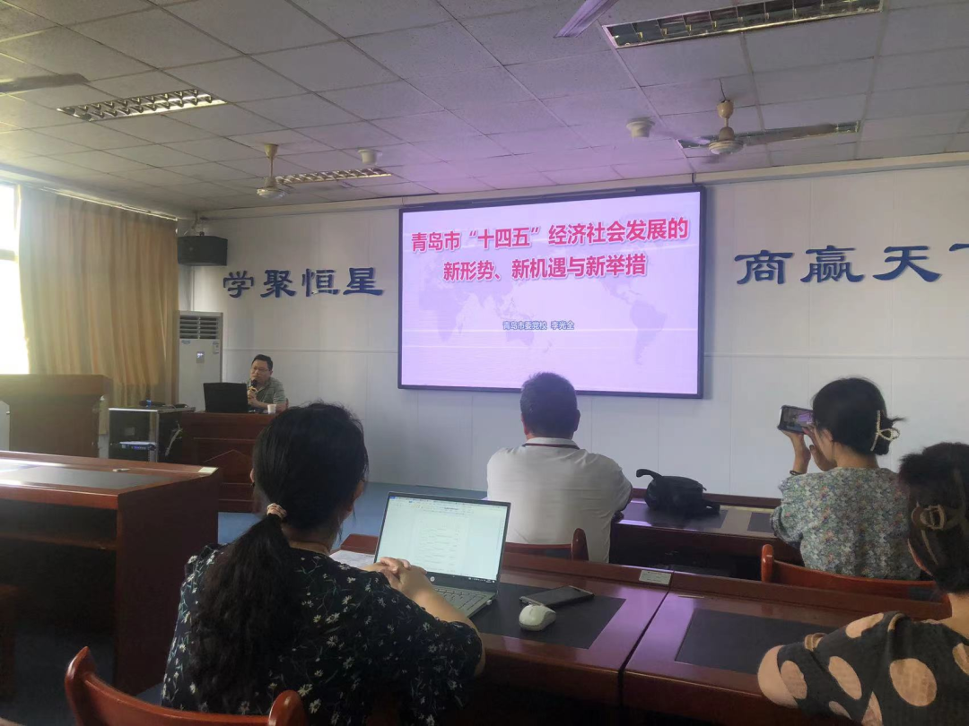 2022年7月14日下午2点至4点,在图书馆415,青岛恒星科技学院商学院开展了青岛市“十四五”经济社会发展的新形势、新机遇与新举措专题讲座,此次讲座特别邀请了青岛市党委校经济学教研部副主任李光全主讲,商学院院长徐倩主持了本次讲座,全体教师全程参加。