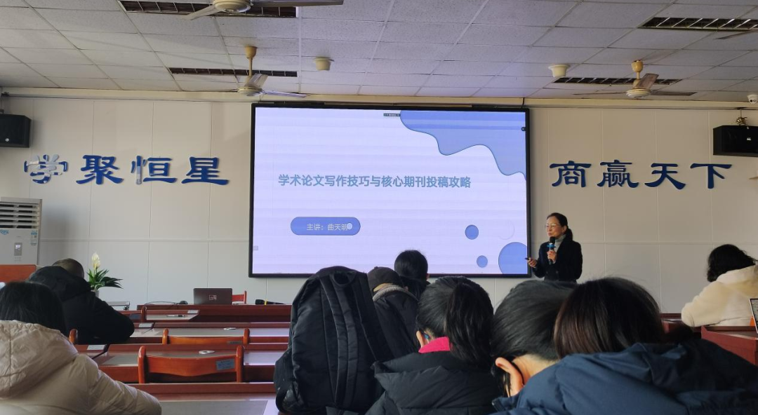 2022年12月6日下午14:00,商学院举办主题为《学术论文写作技巧和核心期刊投稿攻略》的学术讲座。本次讲座特别邀请青岛科技大学法学院曲天明教授担任主讲。商学院科研院长徐芹主持,采用线上线下两种方式同时进行。