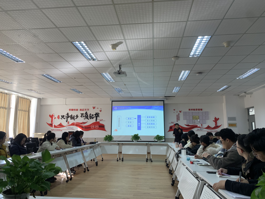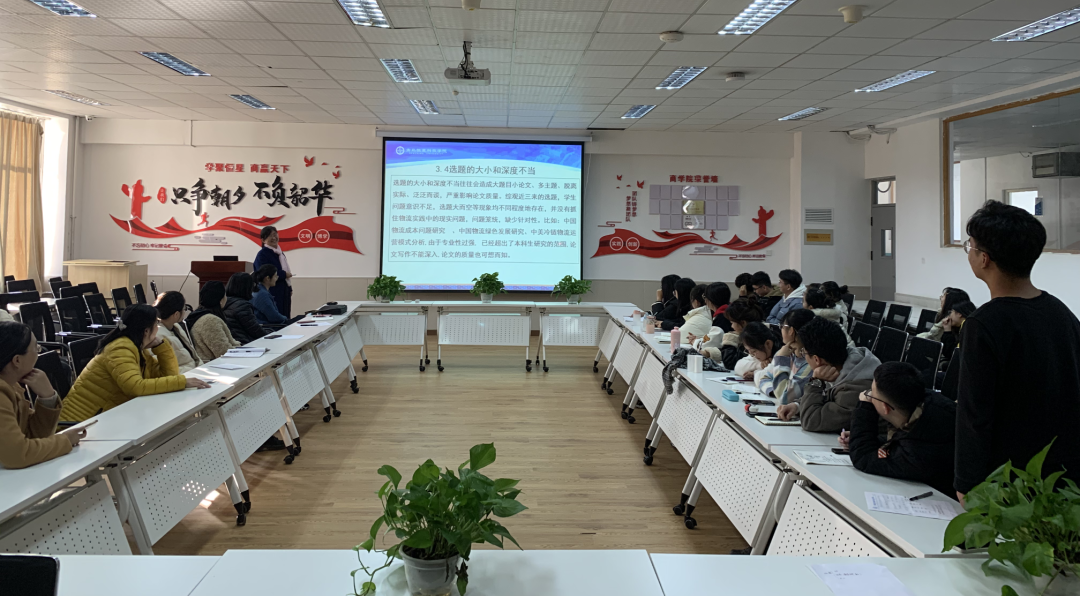 最后,物流研室主任张艳艳对于商学院论文指导时间安排及论文答辩资格审核要点进行介绍,为学生们论文写作道路上明确方向,确保每一位学生能够实时得到老师们精心的指导,从而进一步提高论文完成的效率和质量。