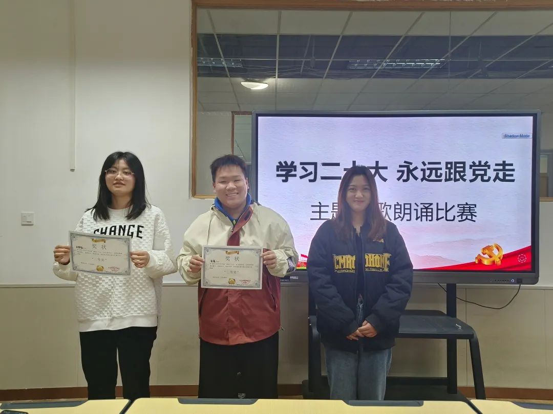 通过本次活动,不仅提升了同学们的朗诵能力和自我修养,更是商学院学子深入贯彻学习党的二十大精神的深刻体现,坚定不移的听党话、跟党走,始终响应党的号召,让广大青年大学生以青春之力谱写盛世华章,为以中国式现代化全面推进中华民族的伟大复习接续奋斗!