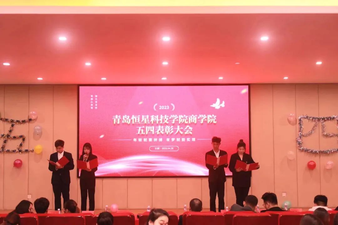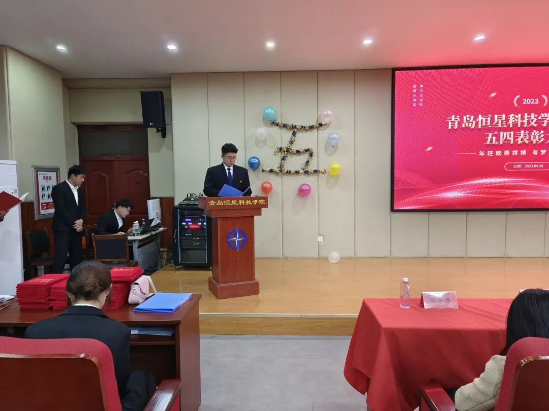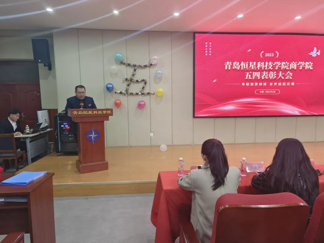 为了鼓舞同学们的士气,增强其作为共青团员的光荣感、责任感和使命感,并为同学们树立良好的形象,营造浓厚的学习氛围,加强学生的思想道德建设,提高自身综合素质,青岛恒星科技学院商学院于4月26日在A8-110举办“弘扬五四精神,争做优秀青年”表彰大会。