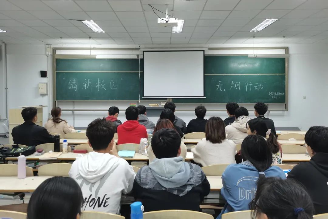 5月31日是世界无烟日,为了我们自己的健康,也为了身边的人,我们呼吁全体同学都要自觉地远离香烟,毕竟,香烟对我们有害无益。没有烟雾,空气会更加清新,没有烟草,生命会更加绚烂!2021年4月1日,青岛恒星科技学院商学院在A3-404教室围绕“清新校园,无烟行动”这一主题开展活动。