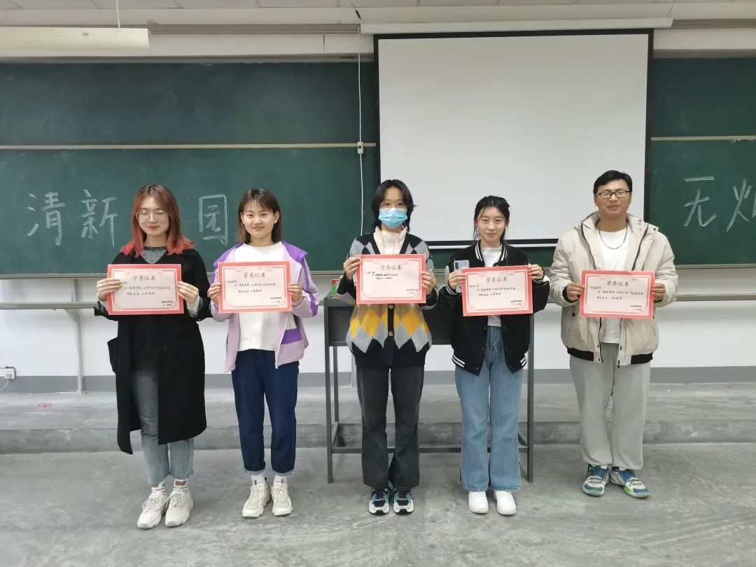 在本次“清新校园,无烟行动”主题活动中获奖的同学有:18物流工程101班李浩然、18物流工程102班马淑蕾、19工商管理101班秦茉含和孙晓涵、19金融工程105班陶孟顺、20工商管理大类101班王艺霏、20工商管理大类105班韩昕利、20金融工程101班宋桂鑫。