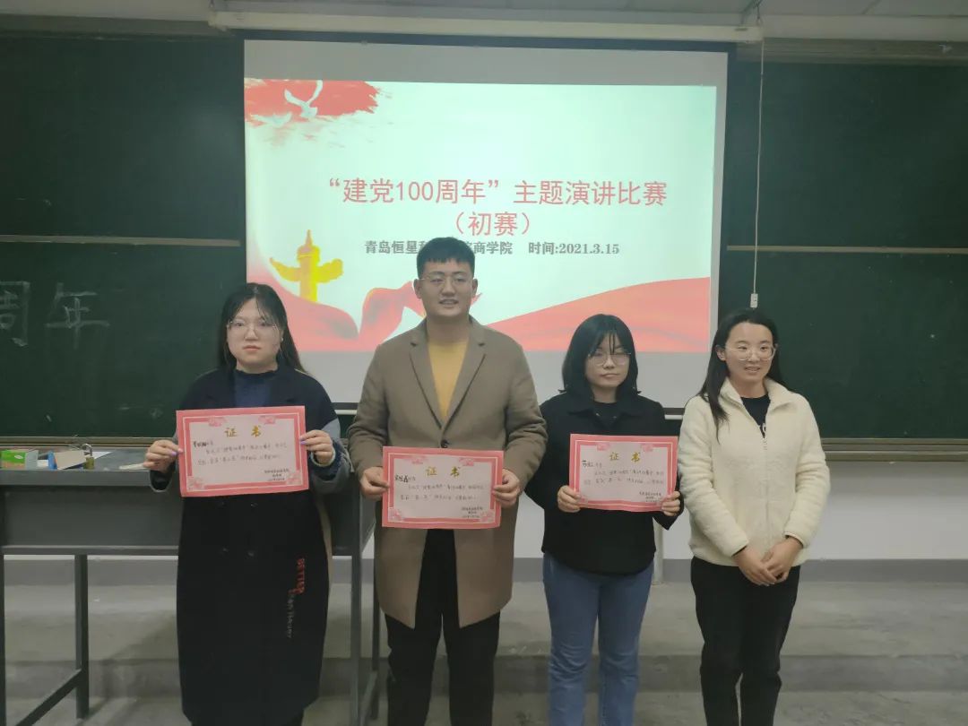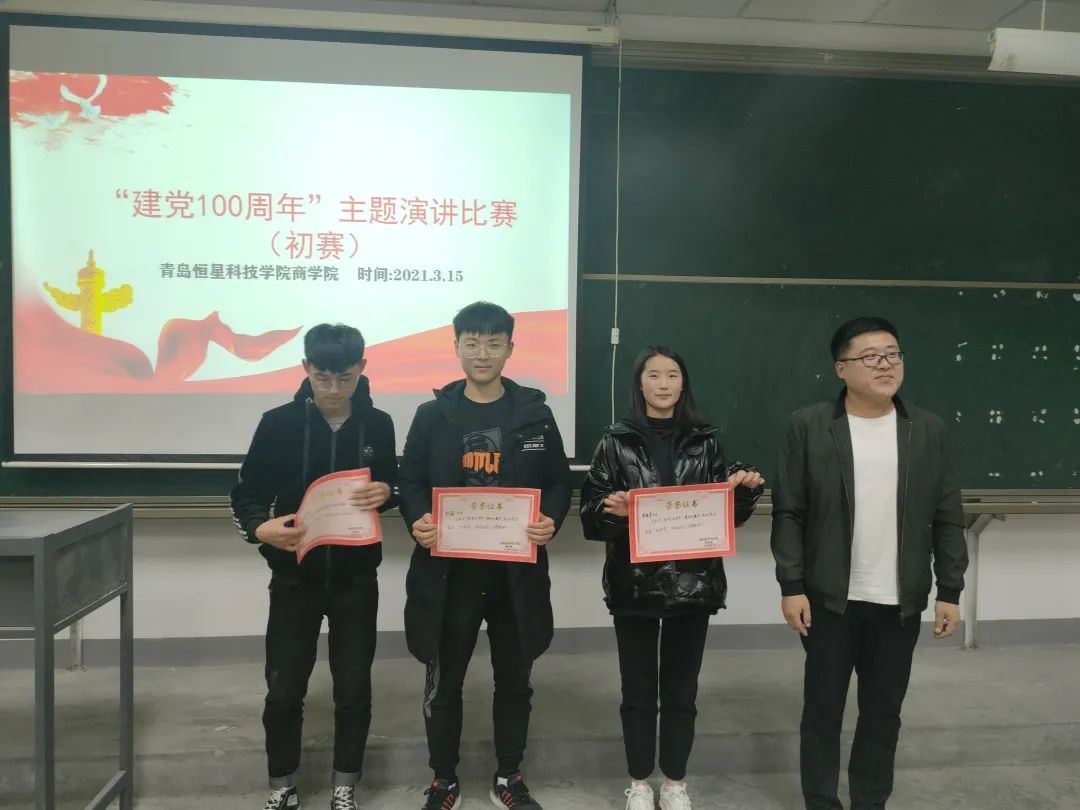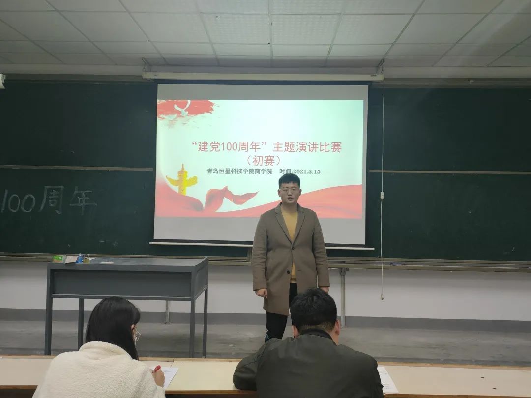 为喜迎建党一百周年,不忘初心跟党走。商学院于2021年3月15日晚六点在A3-408教室举行建党一百周年主题演讲比赛,本次演讲活动由商学院副院长徐飞、辅导员殷齐尚老师担任评委。