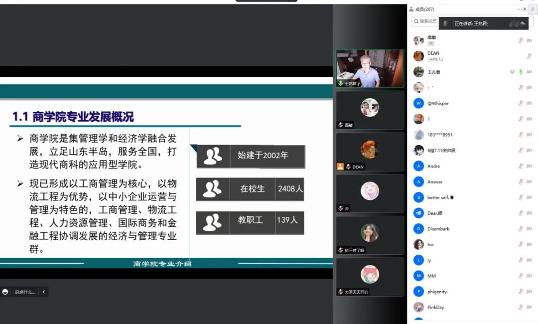 为促进师生之间的交流与沟通,增进同学们对自身专业的了解,更快的适应青岛,融入恒星,开启新的大学两年的时光。青岛恒星科技学院商学院于2022年7月9日在腾讯会议举行2022专升本新生见面会暨专业宣讲会,会议由商学院办公室主任许琼瑶主持。